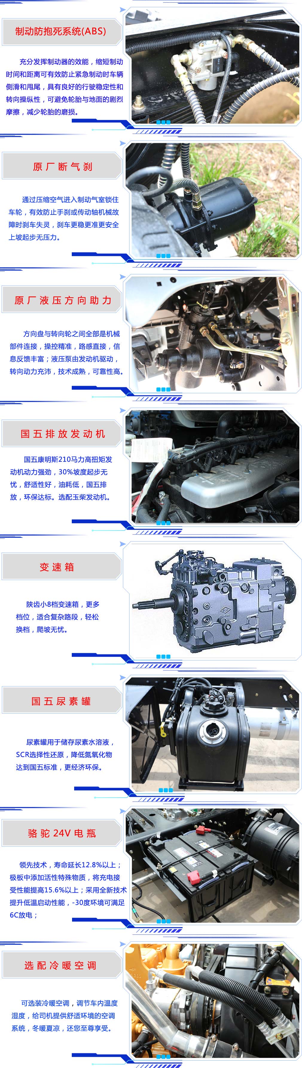 | 其他 | 1,罐體有效容積18.25立方米,介質(zhì):丙酮水溶液,密度:800千克/立方米,罐體尺寸為(mm): 6900×2400×1500。2,防護(hù)材料:Q235A碳鋼,連接方式:左右側(cè)面及后下部防護(hù)均采用焊接連接,后部防護(hù)斷面尺寸(mm):150×50,后部防護(hù)離地高度(mm):550。3, ABS型號為3631010-C2000,生產(chǎn)廠家為東科克諾爾商用車制動系統(tǒng)(十堰)有限公司。4,文字噴涂位置,車輛顏色及局部細(xì)節(jié)可變化。5,隨底盤選裝駕駛室。 | ||