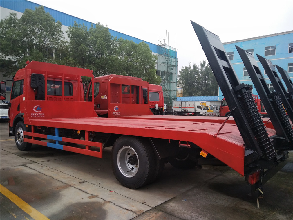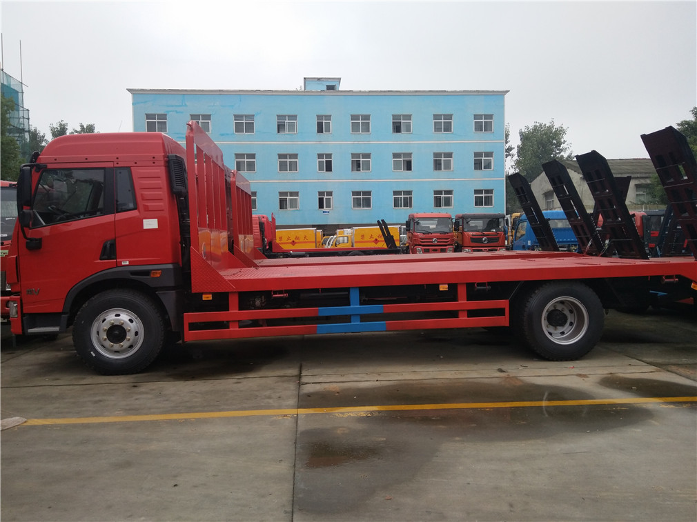 | 其他 | 选装平顶驾驶室。防护材料:Q235A碳钢,连接方式:左右侧面与平板纵梁采用焊接连接, 后部防护与车架采用焊接连接,后部防护断面尺寸(mm):120×50,后部防护离地高度(mm):485,ABS生产厂家/型号:上海万捷汽车控制系统有限公司/VIE ABS-II.安装具有卫星定位功能的行驶记录仪。发动机型号: BF4M2012-16E5,BF6M2012-18E5,CA4DLD-18E5,CA4DK1-18E5,CA6DLD-22E5, ,对应的油耗值分别为(L/100km):26.1,26.5,26.3 | ||