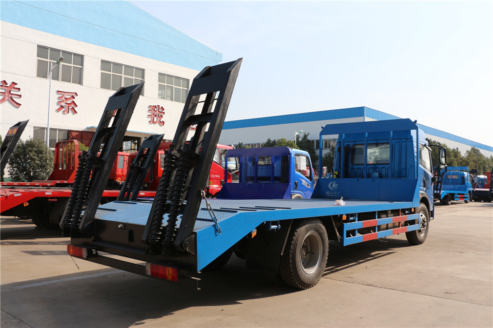| 其他 | 该车仅用于运送不可拆解物体。防护材料:Q235A碳钢,连接方式:左右侧面与平板纵梁采用焊接连接, 后部防护与车架采用焊接连接,后部防护断面尺寸(mm):110×50,后部防护离地高度(mm):400,该车安装带有卫星定位功能的行驶记录仪。该车选用发动机型号BF6M2012-20E51, BF6M2012-18E5,BF4M2012-16E5,CA4DK1-18E51,CA4DK1-22E51对应的油耗值分别为(L/100km):25.14;24.83;24.86,23.62,23.62。ABS系统生产厂 | ||